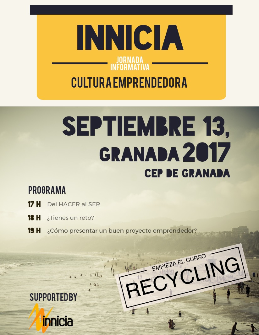 Todos y todas las docentes que estén interesados en participar este nuevo curso 17-18 en el Programa Educativo Innicia Cultura Emprendedora tienen una cita el 13 de septiembre a las 17:00 horas en el Cep de Granada donde se celebrará una reunión informativa sobre dicho programa para aclarar dudas y explicar qué características deben tener los proyectos. Esta reunión es totalmente voluntaria y no es necesaria ninguna inscripción.