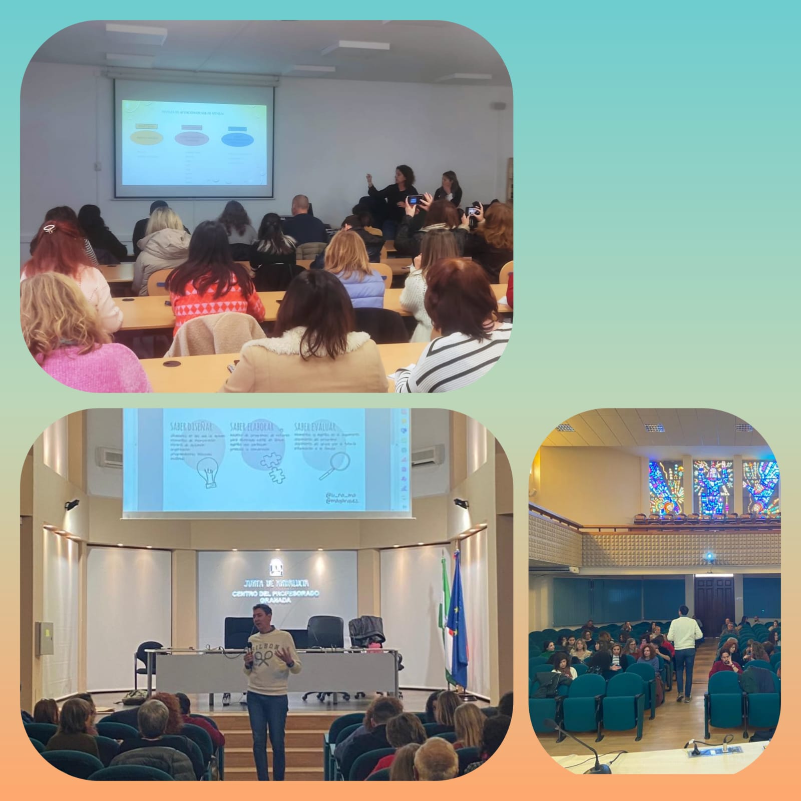 En la primera parte de la sesión se abordó el bienestar técnico, mediante cuatro talleres simultáneos que focalizaron su atención en: los programas de refuerzo, incidencias en la plataforma Séneca, proyectos vitales y profesionales inclusivos del alumnado, la atención a la salud mental infanto-juvenil en Granada y metodologías de trabajo en el aula para alumnado con Altas Capacidades Intelectuales.