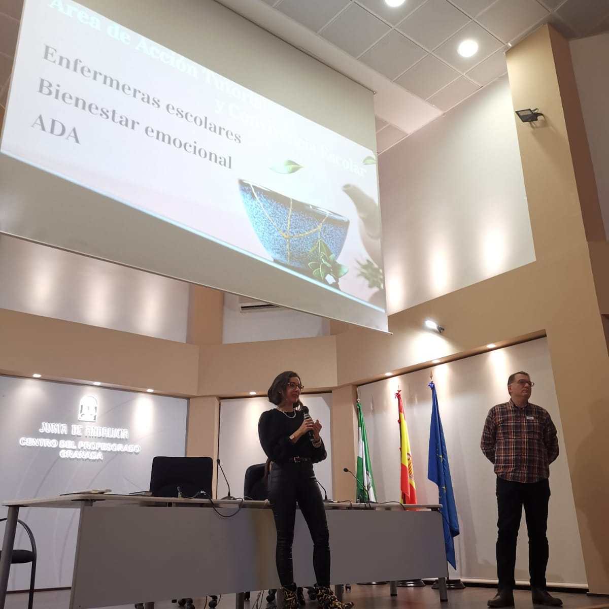Para comenzar, se proyectó un vídeo editado para la ocasión que inaugurase y diese sentido al encuentro, haciendo un símil entre la técnica Kintsugi y la necesidad de parar y reflexionar sobre nuestras propias cicatrices para, desde la calma, hacer ese “pegado” que enriquezca el “mundo de la Orientación”.